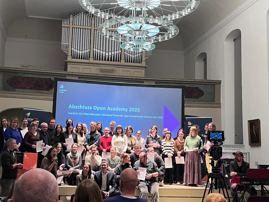 Am 1. November feierte die diesjährige Open Academy von science2public im Rahmen des Silbersalz-Festivals in den Franckeschen Stiftungen in Halle ihren feierlichen Abschluss. Beim Showcase, gestaltet als unterhaltsamer Science Slam, präsentierten die Teilnehmer:innen ihre Projekte und gaben Einblicke in die Welt der Wissenschaftskommunikation.
